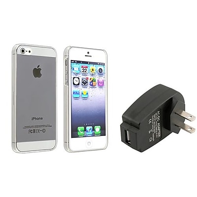 Compatible with Apple iPhone 5/5S Includes clear snap-in slim case keeps iPhone safe and protected in style, adds a splash of color and provides protection from scratches, allows easy access to all buttons, controls and ports Includes black 1 A USB travel charger adapter needs to pair with a USB charging cable, charge any devices that rely on USB for power, automatically adjusts to all voltages and frequencies in the U.S., Europe, and Asia